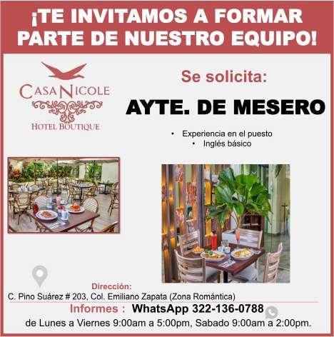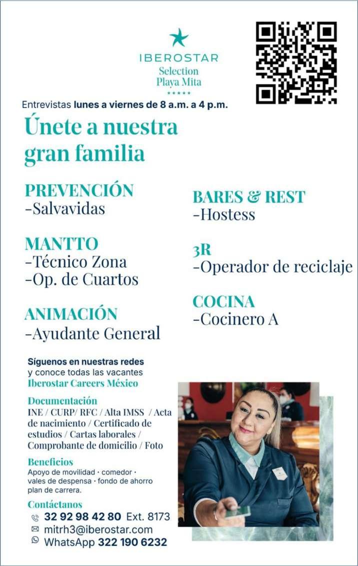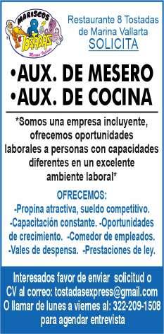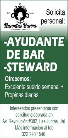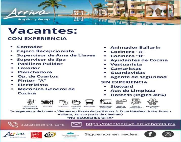 tudiando, sociable. Ofrecemos sueldo, comisiones, despensa, prestaciones de ley. Contacto para cita. 322 72 899-58.+