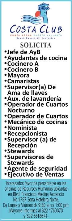 tas-atención al cliente, buena presentación, facilidad de palabra, servicio al cliente, responsable, ofrecemos sueldo competitivo, prestaciones de ley. Inf. 322 35 651-14.+