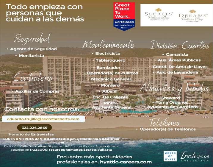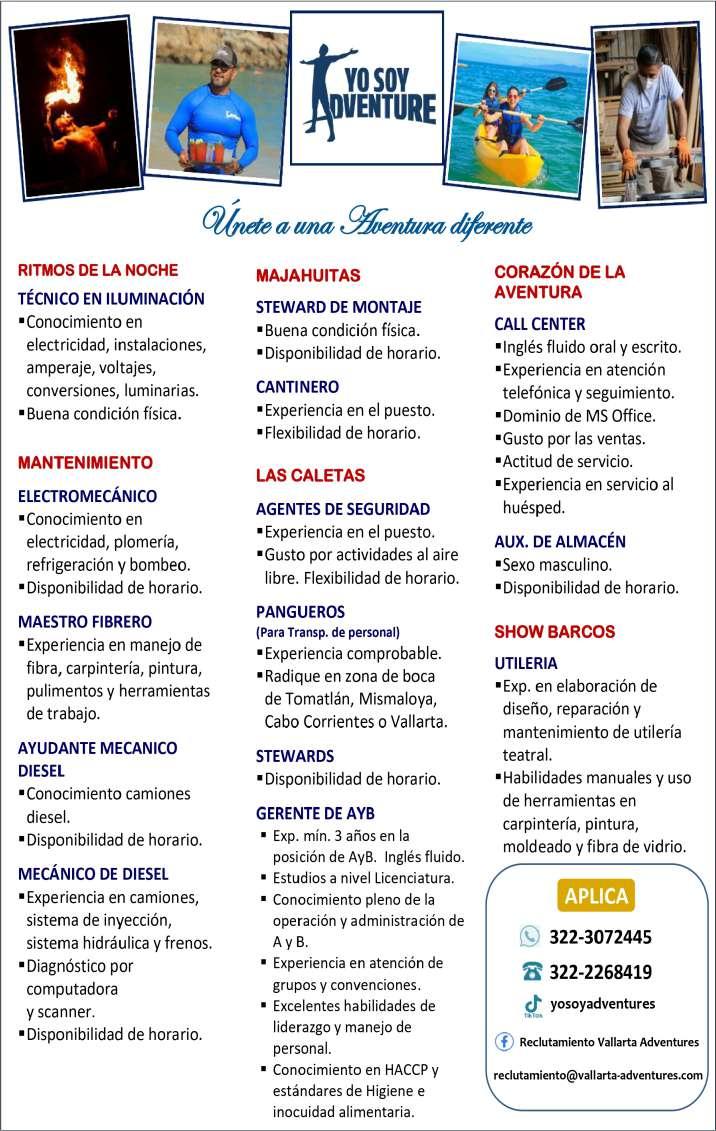Únete a nuestro equipo de trabajo, solicitamos agentes de seguridad para muelles de la marina, sexo femenino, ingles básico, experiencia en el puesto, disponibilidad de horario. Inf. 322 22 103-95.+