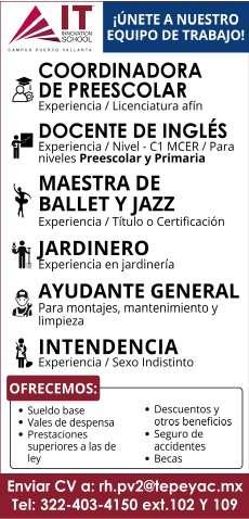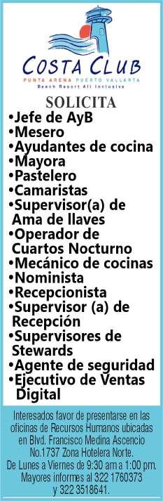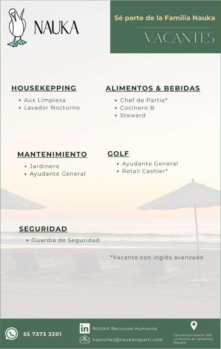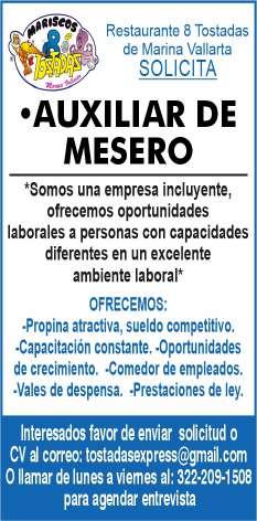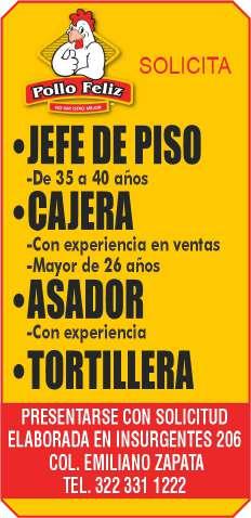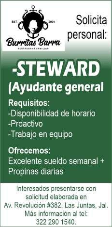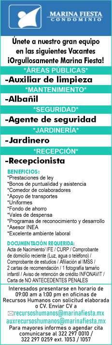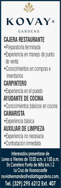 periencia en puesto similar, viva en zona Bahía de Banderas. Inf. 329 29 654-88.+