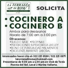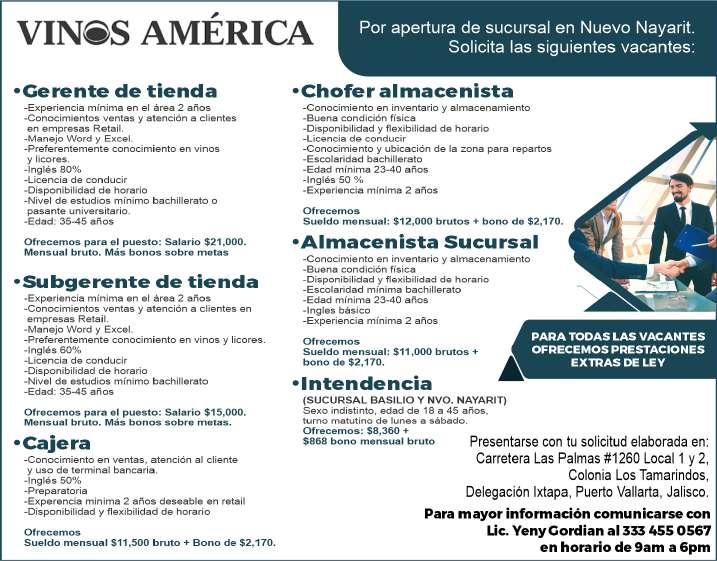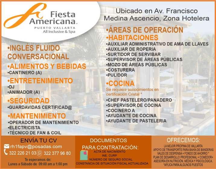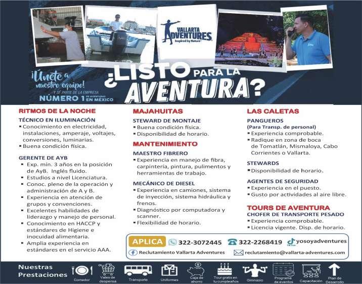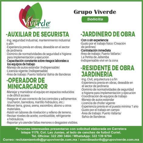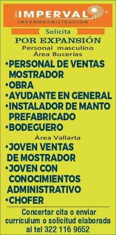 gente, mayor de edad, acostumbrado a trabajar bajo presión, pueda cargar pesado, área Puerto Vallarta. Ofrecemos prestaciones de ley. Inf. 322 24 372-37, 322 22 649-50.+