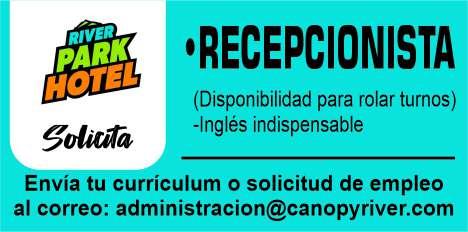 ¿Quieres formar parte de nuestro equipo? solicitamos recepcionista ingles indispensable. Enviar cv a: administracion@ canopyriver.com