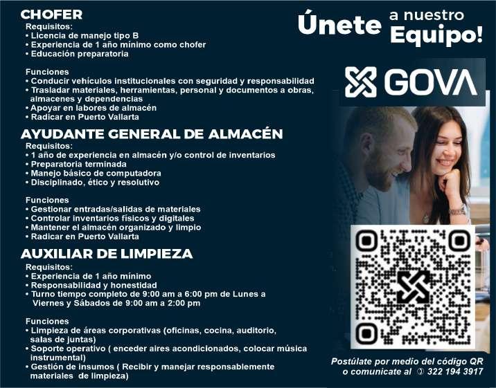 sión, pueda cargar pesado, área Puerto Vallarta. Ofrecemos prestaciones de ley. Inf. 322 24 372-37, 322 22 649-50.+