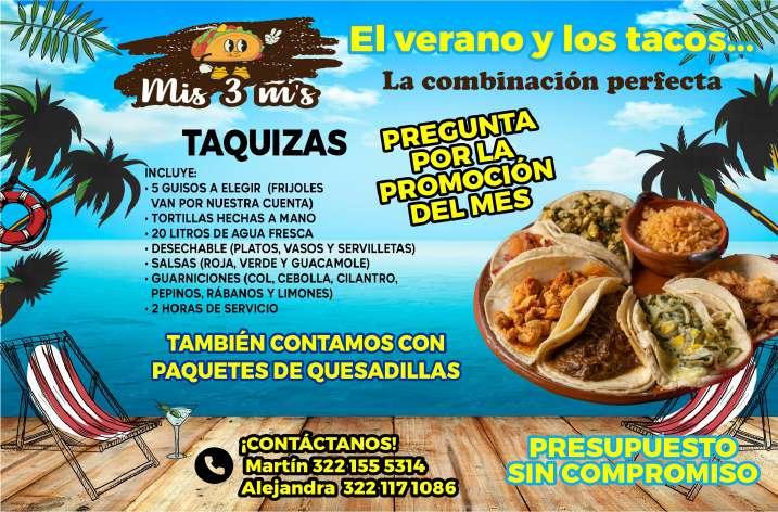 ¿Vas a tener una fiesta o evento? Nosotros te llevamos los tacos. Varios guisos a elegir, presupuesto sin compromiso. Inf. 322 11 710-86, 322 15 553-14.+