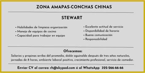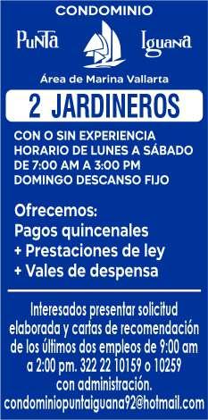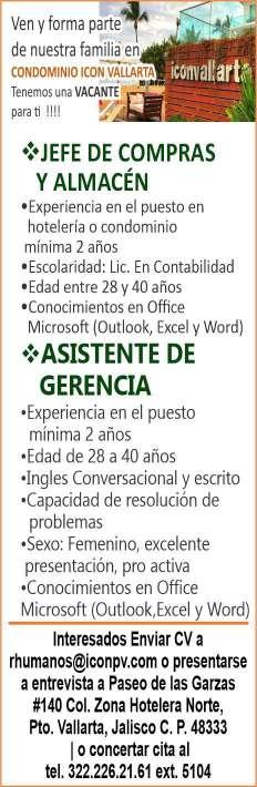periencia en puesto similar, viva en zona Bahía de Banderas. Inf. 329 29 654-88.+
