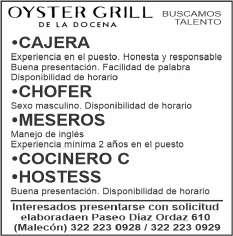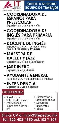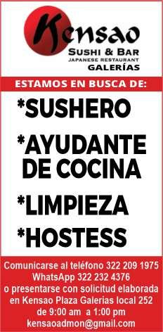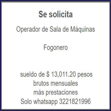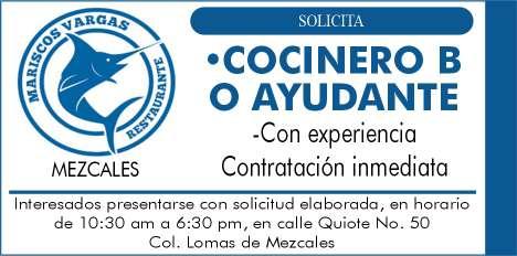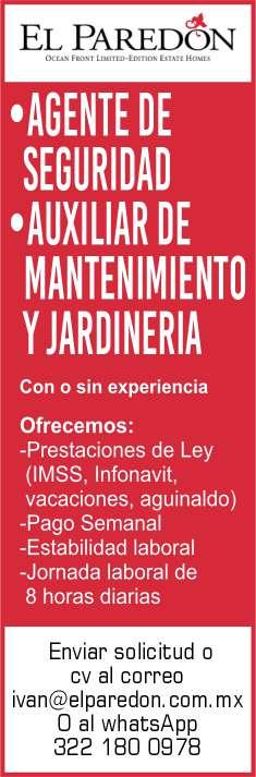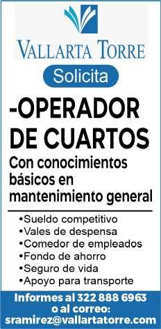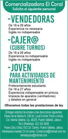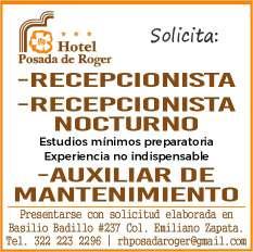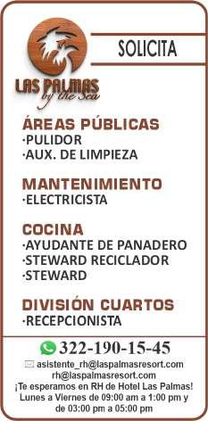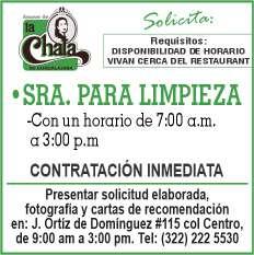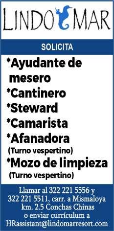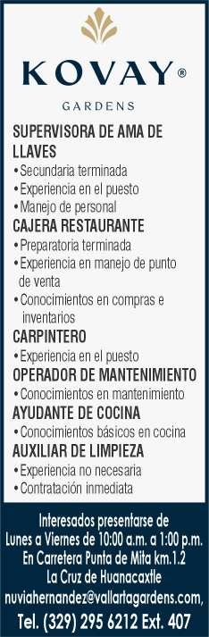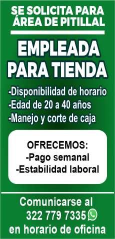vo, sexo femenino, de 25 a 40 años. Ofrecemos sueldo base y todas las prestaciones de ley. Inf. 322 20 915-99, 322 20 910-