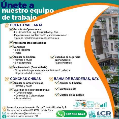 Únete a nuestro equipo de trabajo, solicitamos agentes de seguridad para muelles de la marina, sexo femenino, ingles básico, experiencia en el puesto, disponibilidad de horario. Inf. 322 22 103-95.+