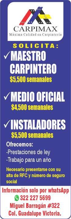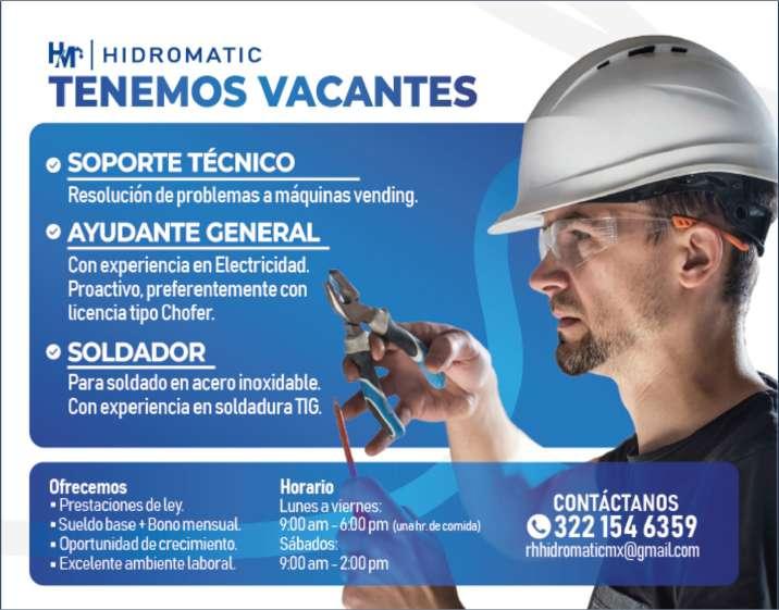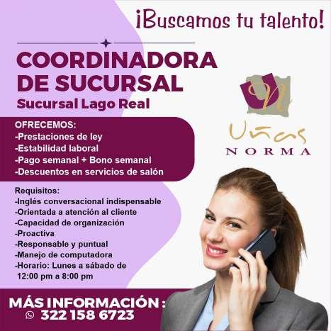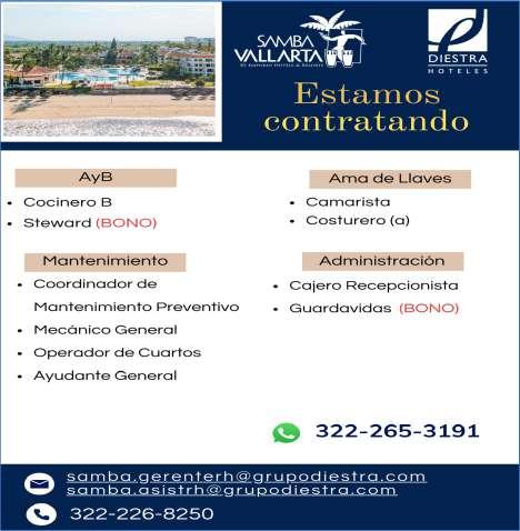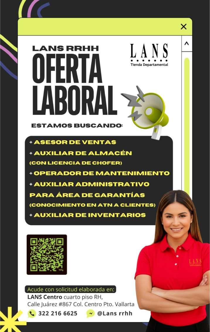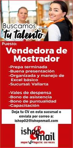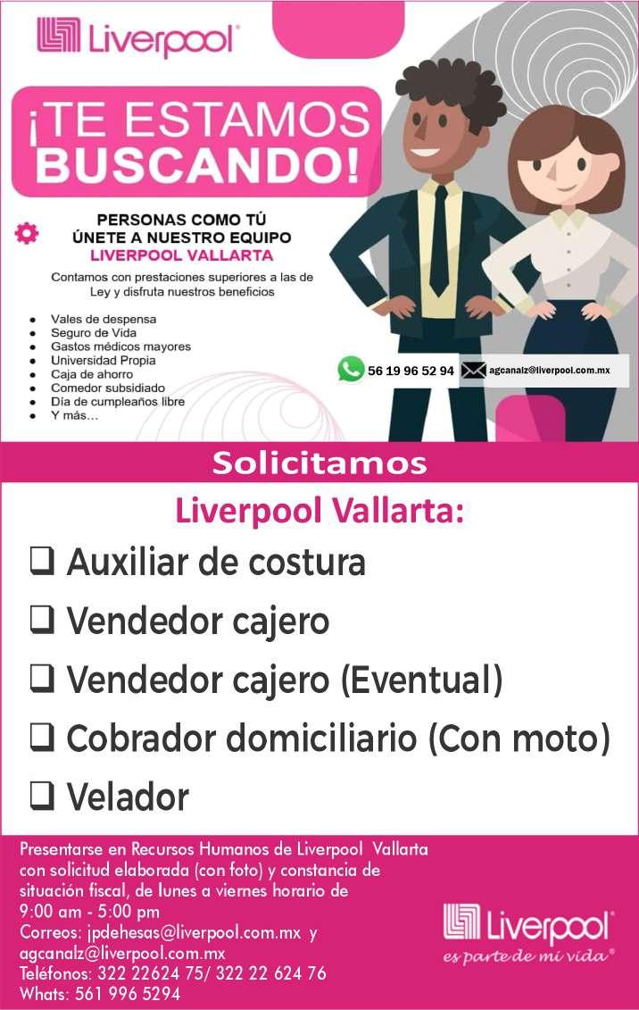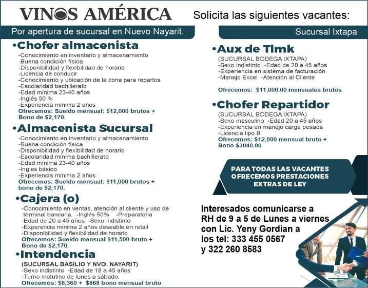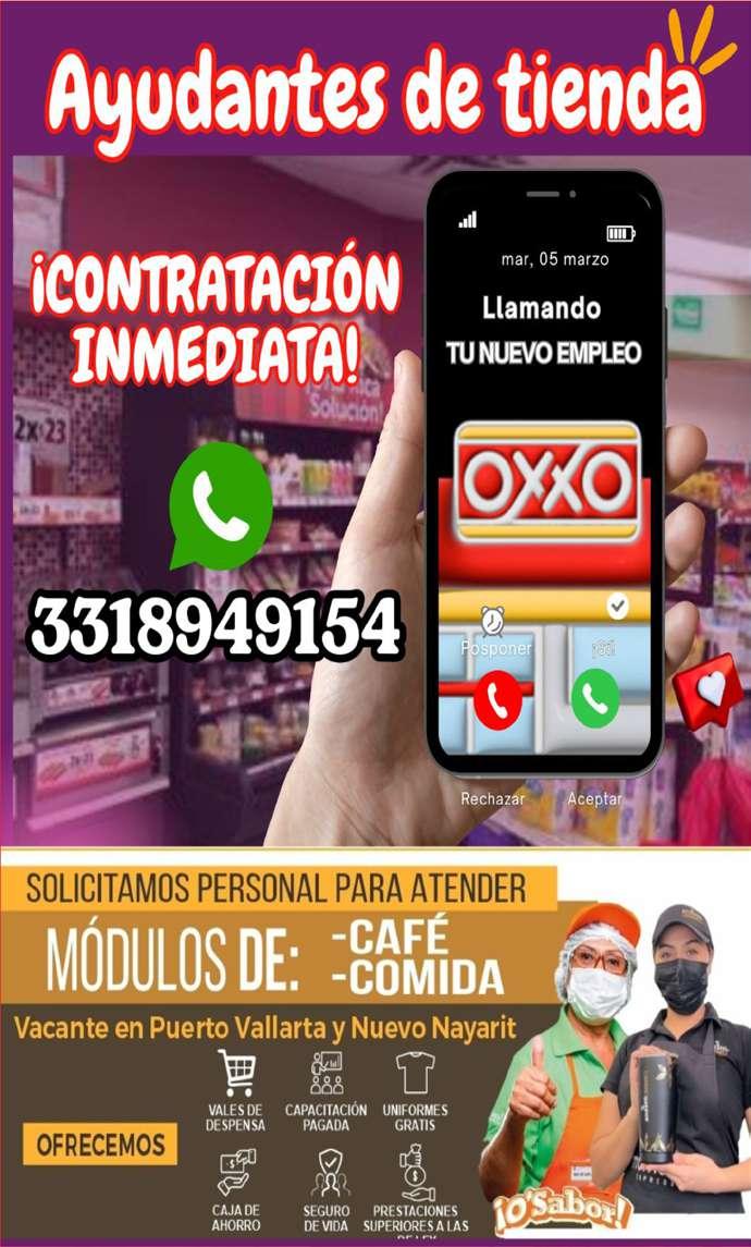 años, escolaridad preparatoria o estudiando por las tardes. Ofrecemos sueldo, comisiones, despensa, prestaciones de ley. Contacto para cita. 322 72 89958.+