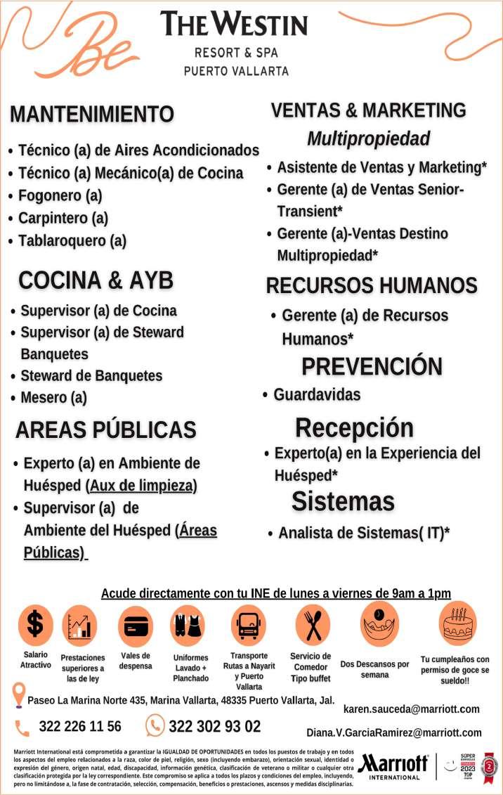 Ofrecemos sueldo, comisiones, despensa, prestaciones de ley. Contacto para cita. 322 72 89958.+