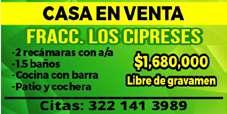¿Deseas vender tu casa, departamento o terreno? ¡No la pongas en riesgo! Ponla con los expertos, informes al. 322 10 870-25.+
