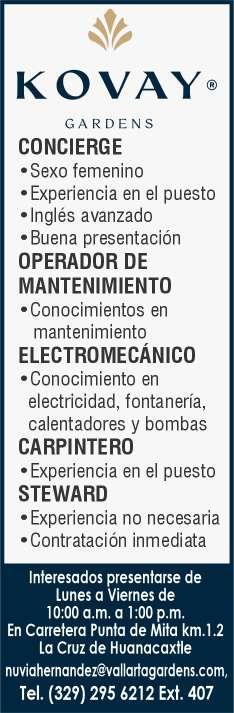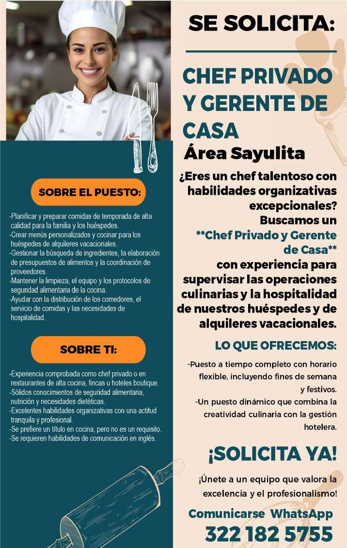 Busco empleo, chef de villa o encargado de casa. +52 329 10 109-36.**