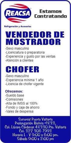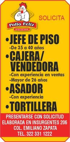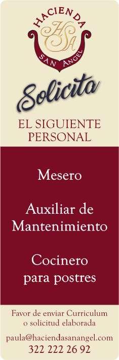 Empleada doméstica, se quede a dormir, 9 a 3, lunes a sábado, cuarto y baño propio, a/a, agua caliente. 322 45 832-96.** 986-92.**