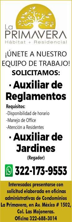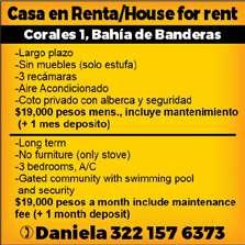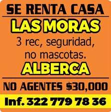 Fraccionamiento Villas Primavera, 2 bedrooms, furnished, full bathroom, air conditioning, living room, dining room, kitchen, garage. $16,000 plus deposit (maintenance included). Info . 322 15 619-29, 322 10 174-06.