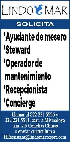 nes solicita cantinero. Inf. 322 24 444-20.+