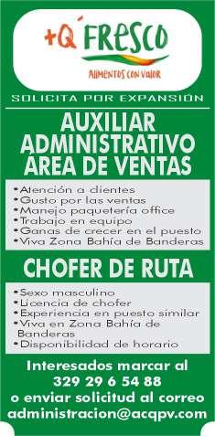 cánico, experiencia, licencia de manejo. Informes. 322 18 20202.+