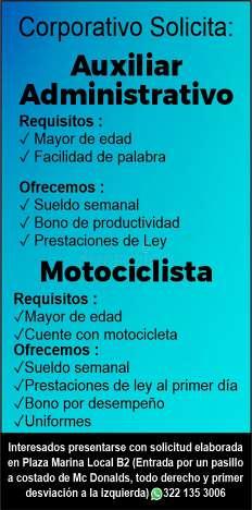 riencia, disponibilidad de horario. Inf. Solo llamadas. 322 13 801-48.+