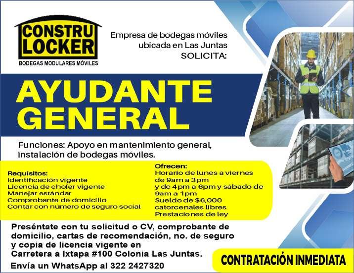 Auxiliar general, requisitos: carga y descarga material, apoyo