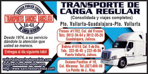 Paquetería, mensajería y carga regular, en 24 horas, Puerto Vallarta-Guadalajara. Inf. 322 22 245-45, 322 22 245-56.+