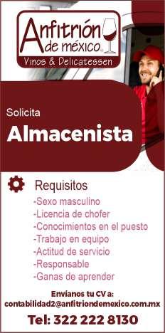 Solicitamos Almacenista. Agendar cita al tel. 322 22 281-30.+
