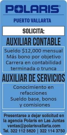 Por expansión se solicita auxiliar contable y aux. administrativo. Informes. 322 11 696-52.+