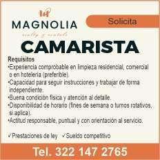 Solicitamos Camarista, experiencia en el puesto. Interesadas llamar a tel. 322 14 89754.+
