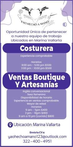 Trabajo en Marina Vallarta, solicitamos costurera con experiencia comprobable. Informes. 322 40 049-51.+