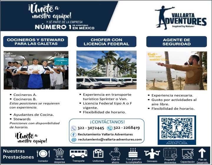 Buscamos para área Quimixto el siguiente personal: Agente de Seguridad, Panguero, Marinero, Steward, Operador de Cuartos, Camarista, contacta vía WhatsApp al. 322 24 41054.+