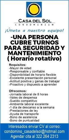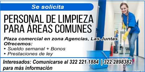 solicitamos asesor de ventas, agente de seguridad, auxiliar de limpieza. Pide cita al tel. 322 21 666-26.+