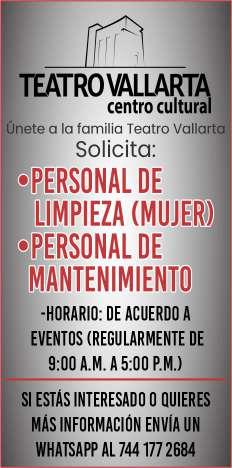 Estamos solicitando en diferentes áreas Administrativas, Operativas y de Servicios, muchas vacantes. Interesados acudir a Av. de Los Tules N.169 Col. Jardines Vallarta.