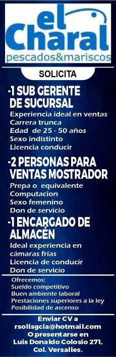 Solicitamos para sucursal Bu-