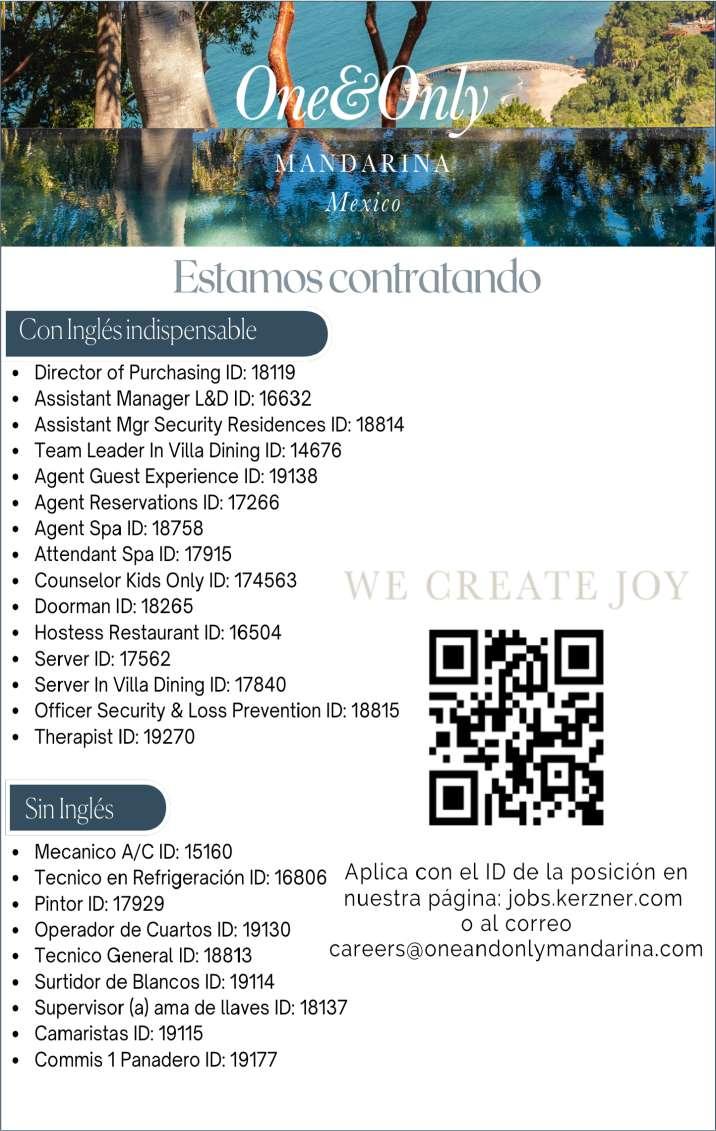 Tenemos para ti 5 vacantes de mantenimiento en general para Punta Mita. Enviar CV a hospitalidadpuntamita@gmail.com