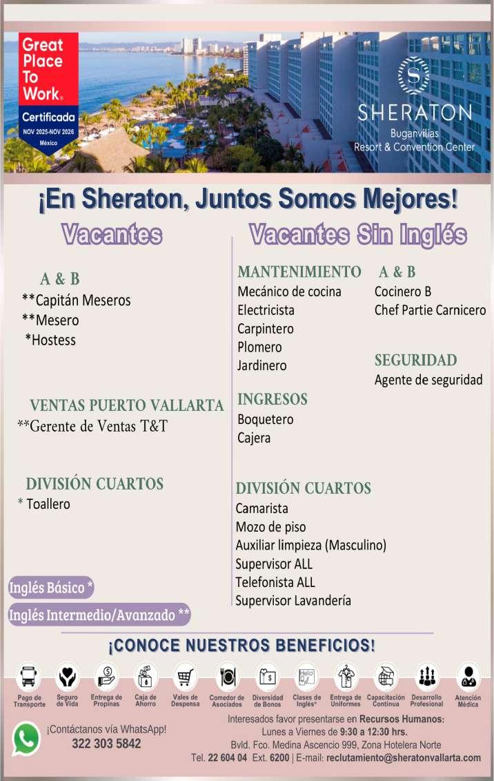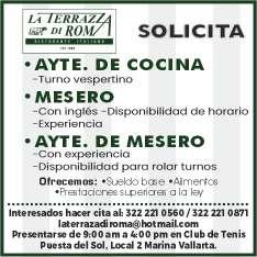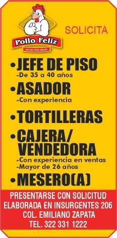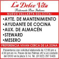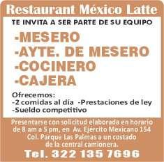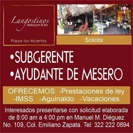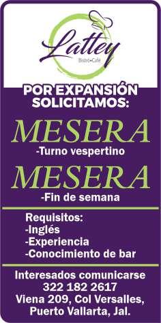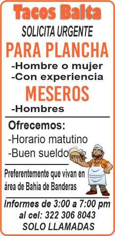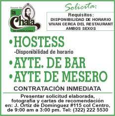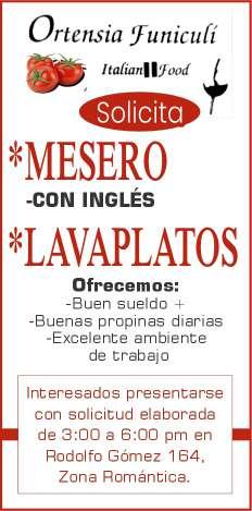 presentación, mesero con disponibilidad de horario. Inf. 322 22 309-28, 322 22 309-29.+