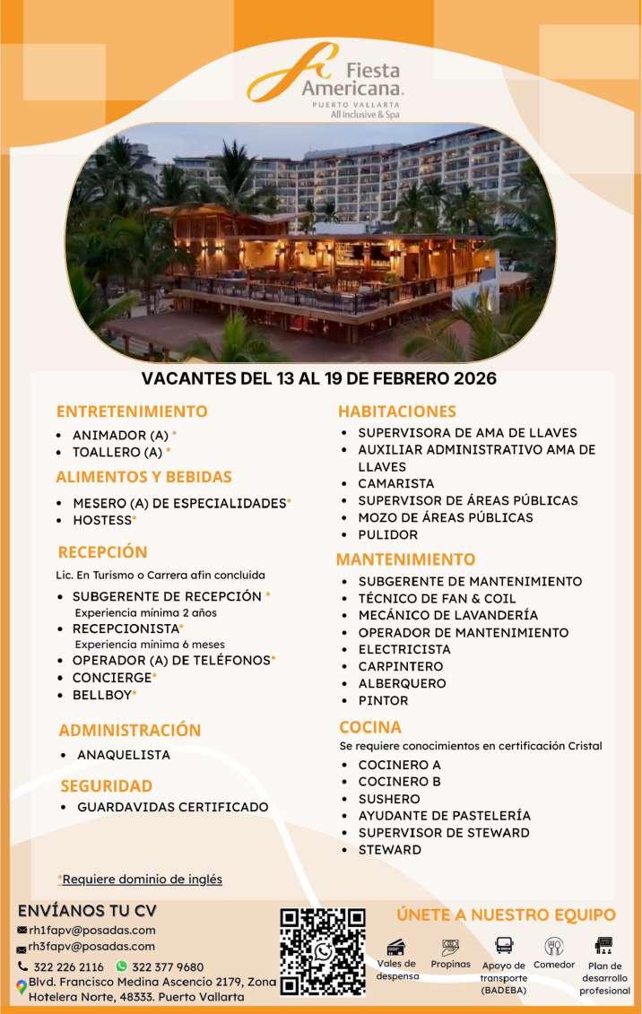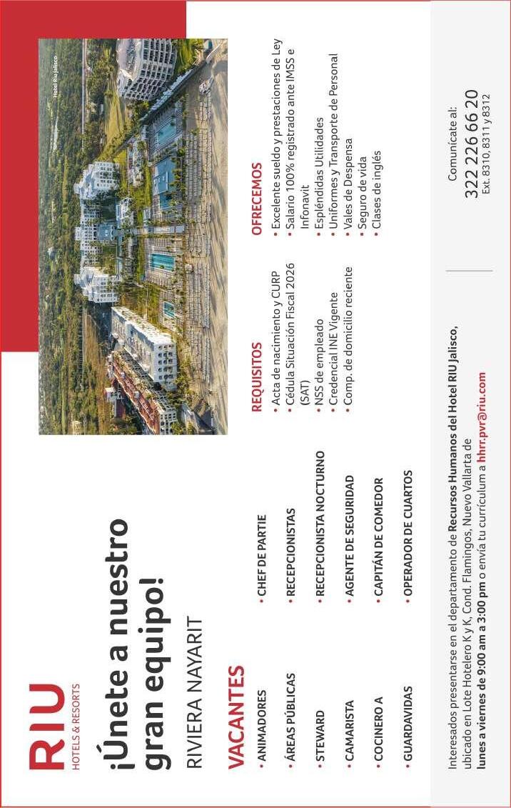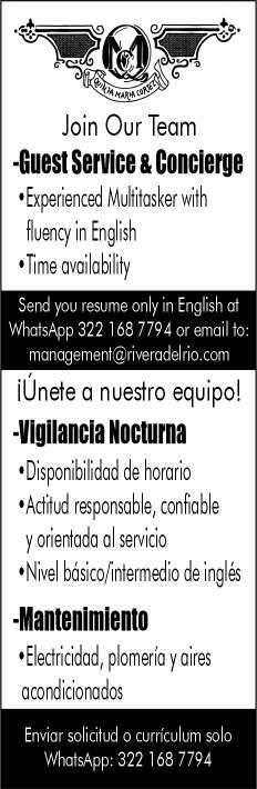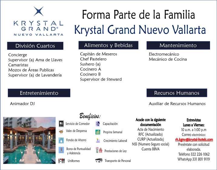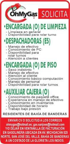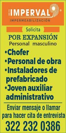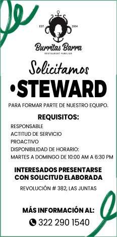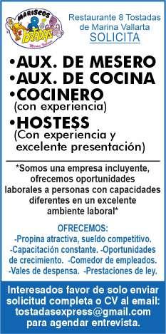 vacantes. Interesados acudir a Av. de Los Tules N. 169, Col. Jardines Vallarta.