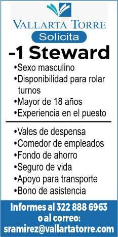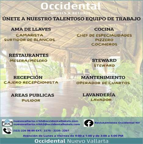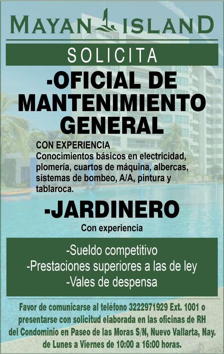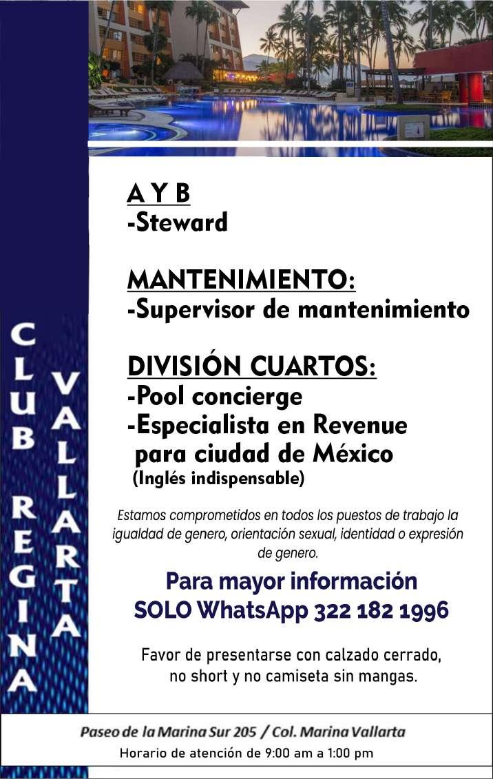 Área de Nuevo Vallarta, solicitamos ayudante de mantenimiento, aux. de almacén, steward,