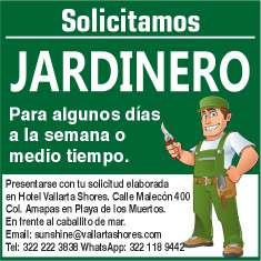 Área de Nuevo Vallarta, se solicita jardinero. Informes al. 322 13 191-61.+