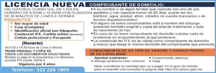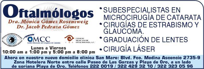 lente. Interesados llamar en un horario de 9am a 2pm al tel. 322 22 676-81, ext. 502 .+