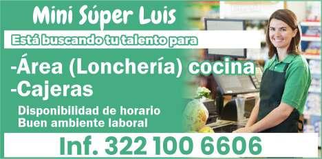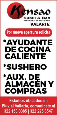 te de cocina caliente, sushero, aux. de almacén y compras. Informes. 322 15 003-85, 322 22 535-47.+