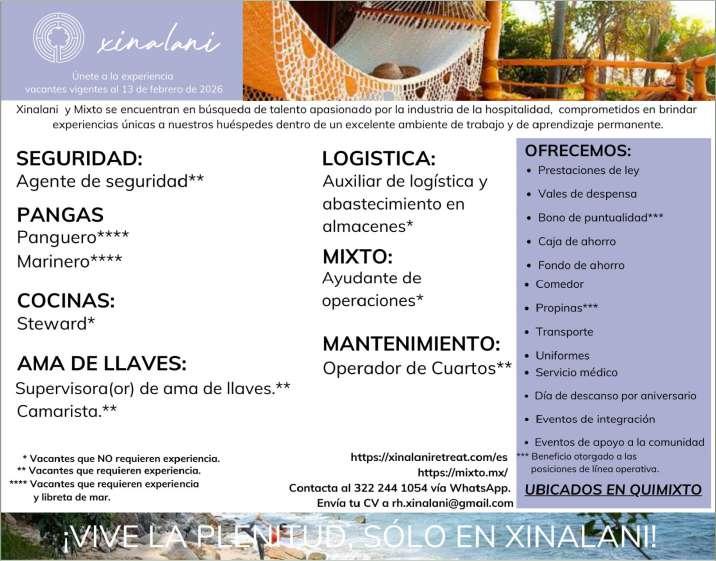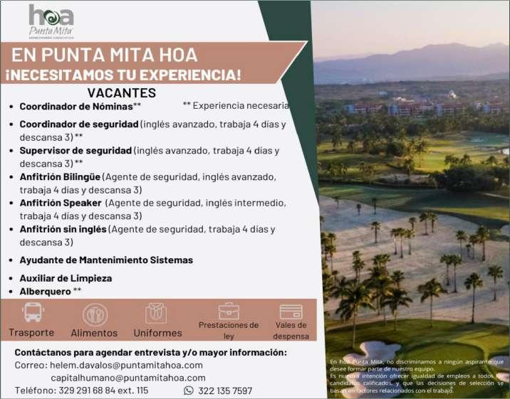 Tenemos para ti 5 vacantes de mantenimiento en general para Punta Mita. Enviar CV a hospi-