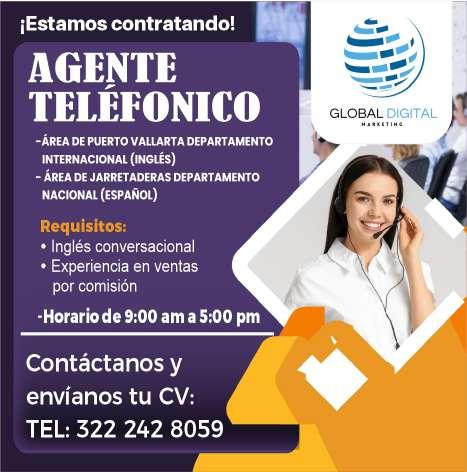 Solicitamos costumer service representative, inglés 80%, dominio básico de computación, experiencia en atención al cliente, trabajo presencial. Tel. 322 47 034-67.+