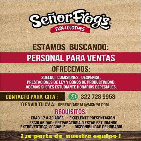 Estamos buscando personal para ventas. Contacto para citas tel. 322 72 899-58.+