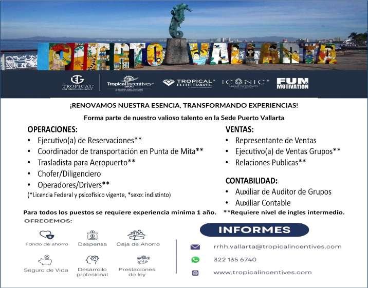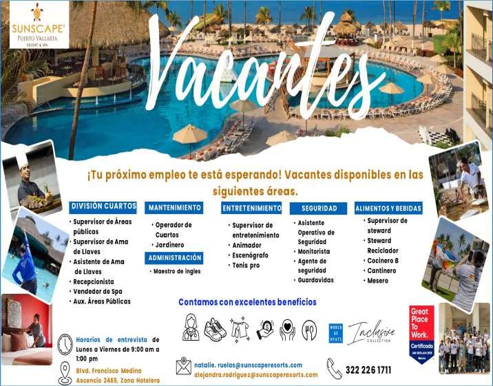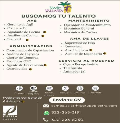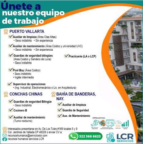 Estamos solicitando en diferentes áreas Administrativas, Operativas y de Servicios, muchas vacantes. Interesados acudir a Av. de Los Tules N. 169, Col. Jardines Vallarta.