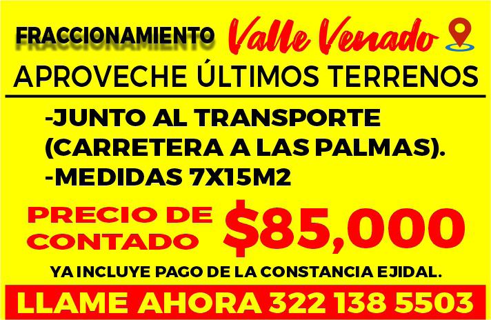 El Zancudo, 7x15 mts, junto a carretera Las Palmas, económico. $85,000. 322 13 855-03.+
