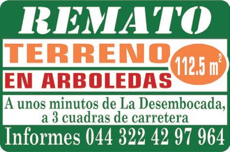 cerca pasa-río, xha. $65,000. 322 23 101-37.*