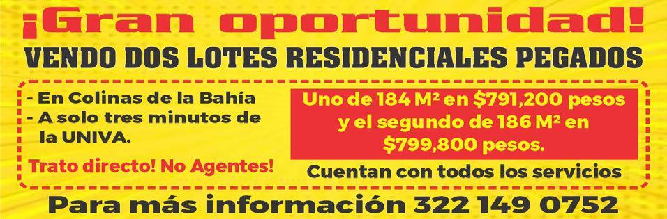 Col. Guadalupe Victoria, 300 mts, $30,000 y 400 mts, $50,000. Inf. 322 20 333-50, 322 26 256-10.+