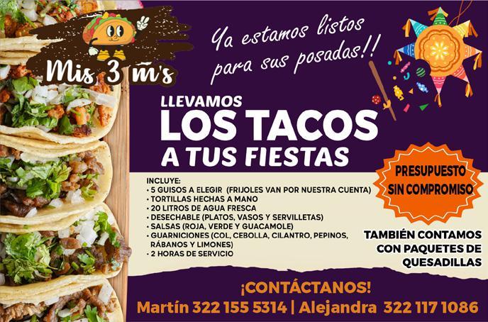 ¿Estas organizando tu fiesta o reunión? Te llevamos los tacos. Varios guisos a elegir, presupuesto sin compromiso. Inf. 322 11 71086, 322 15 553-14.+