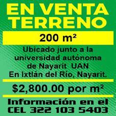 El Ranchito, terreno de 128 M2, rústico. $88,000 de contado. Inf. 322 14 523-98, 322 30 040-00.+