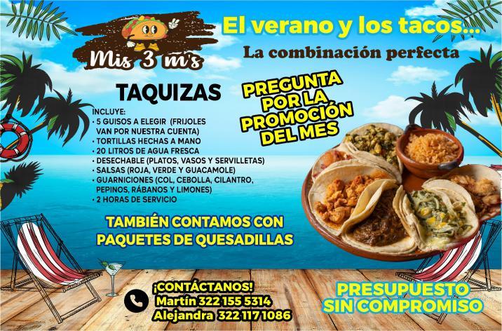 Haz de tu evento una exitosa taquiza, llámanos. 322 10 817-38.+