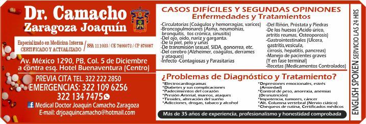Especialista en medicina interna, certificado y actualizado, atención a casos difíciles y segundas opiniones, cita y emergencias. 322 22 228-50, 322 10 962-56.+