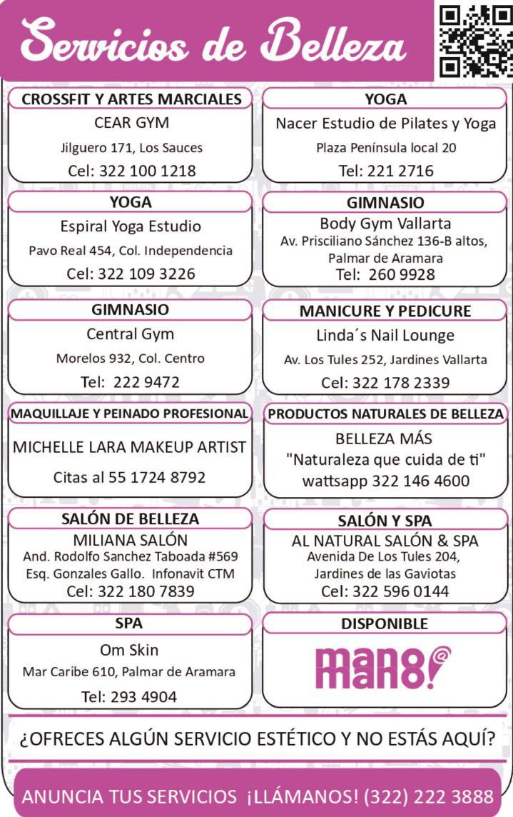 laciones, masajes, tratamientos faciales y corporales, informes y citas al. 322 15 031-24.+