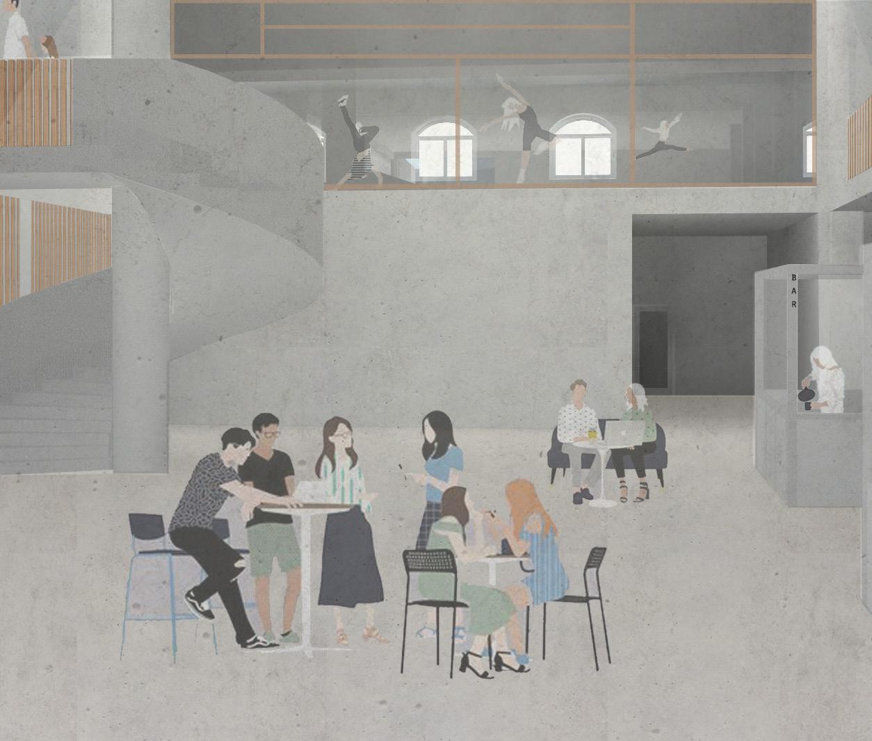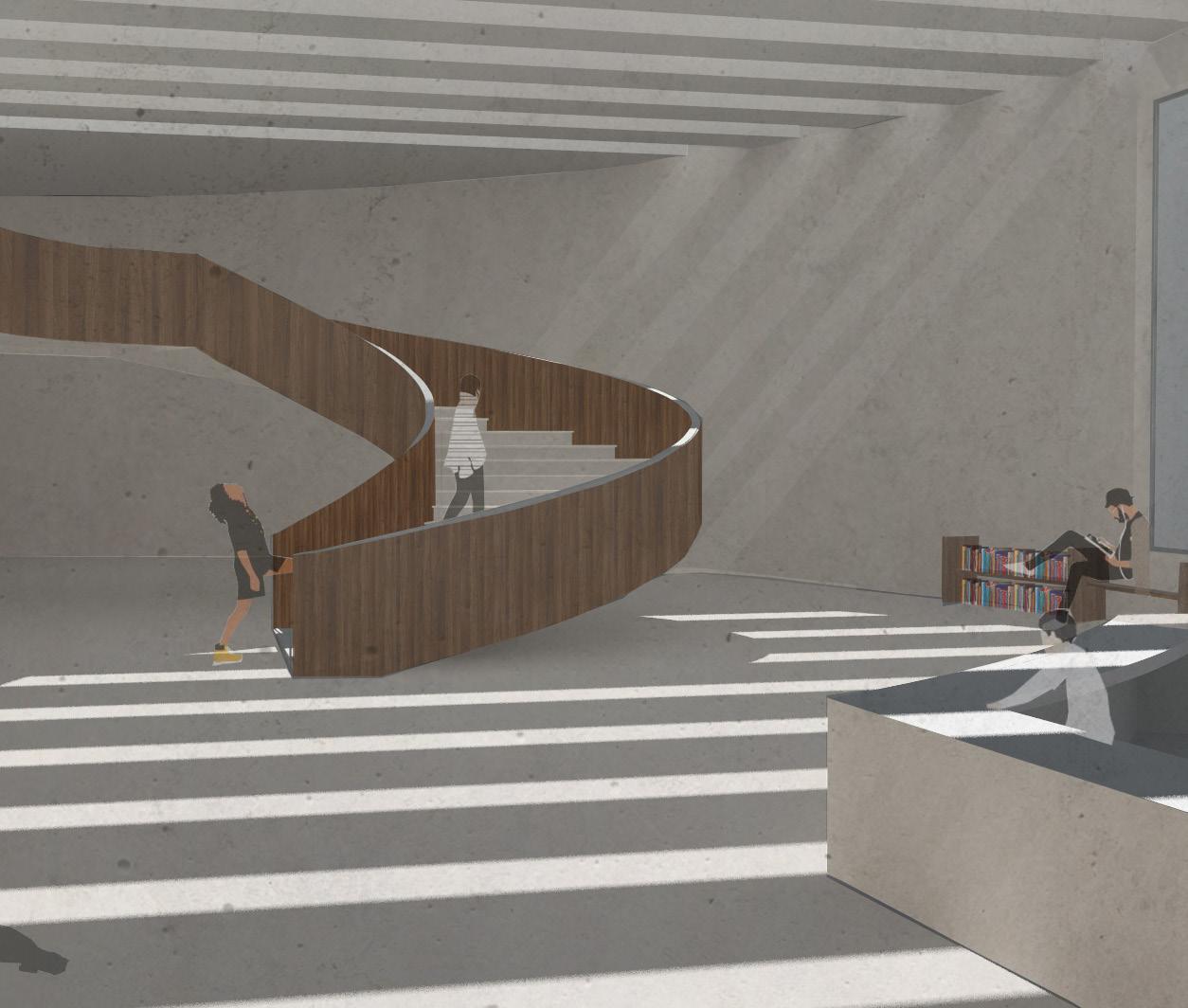 Réhabiliter le CCN existant (au nord de l’avenue principale) en changeant les flux et la distribution des espaces autour d’un atrium central et animé;